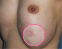 假体丰胸后包膜挛缩、乳房形态不佳、质地变硬等;奥美定注射丰胸后产生硬结、包膜挛缩、注射物扩散流动等;其他创伤及药物造成的乳房缺失、乳腺完全萎缩等;